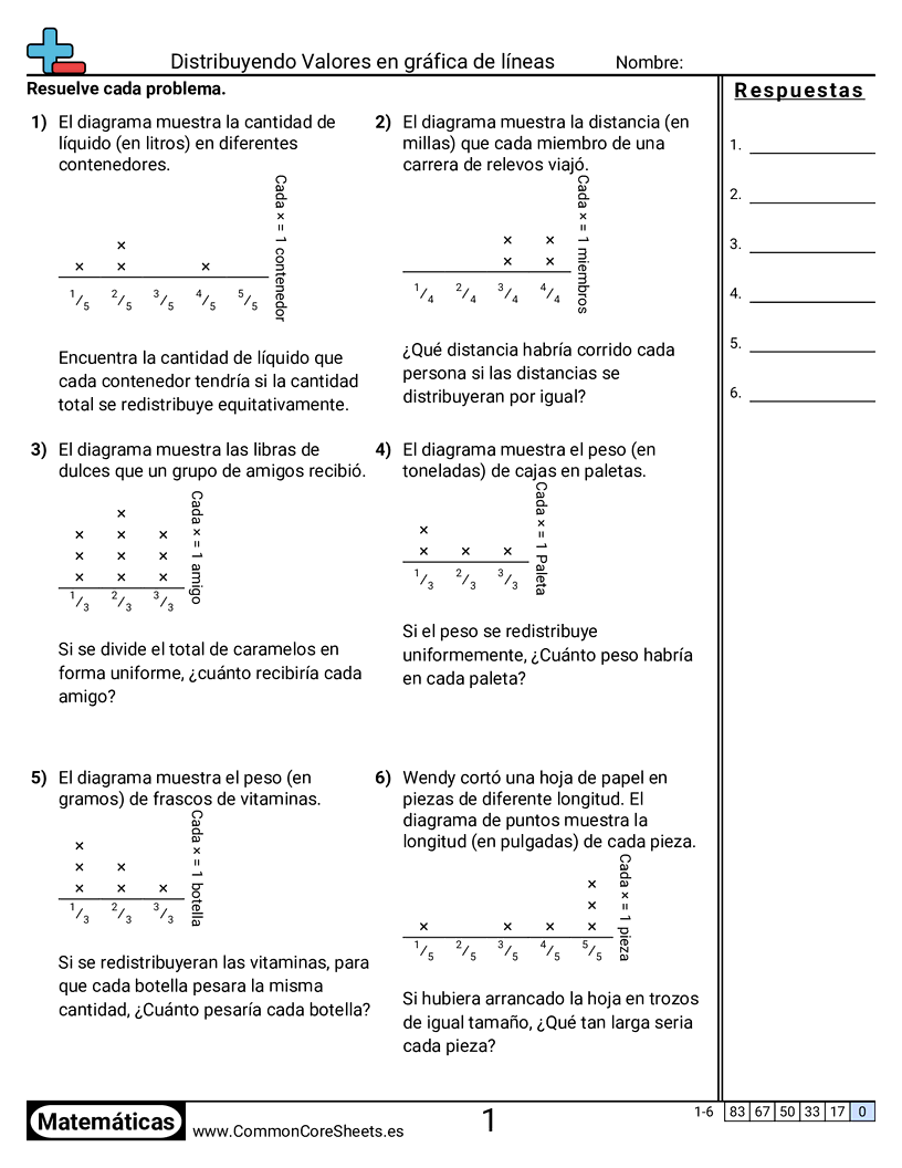Hojas de trabajo gratis de math para 5to Grado (5md2) sobre Distribuyendo Valores en gráfica de líneas. Cada hoja tiene 6 ejercicios con hoja de respuestas y es ideal para maestros y educación en casa. Puedes descargar el PDF, crear tarjetas de memoria o configurarlo para aprendizaje en línea.